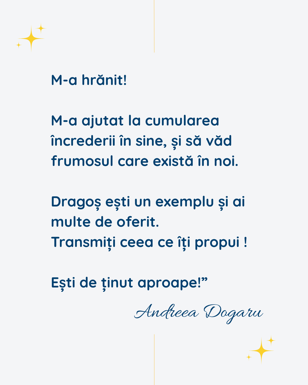 ... Daca vrei sa faci parte din Echipa si sa ai parte de aceasta Experienta Fabuloasa de Transformare, te asteptam cu drag in DIVINE DESTINY.